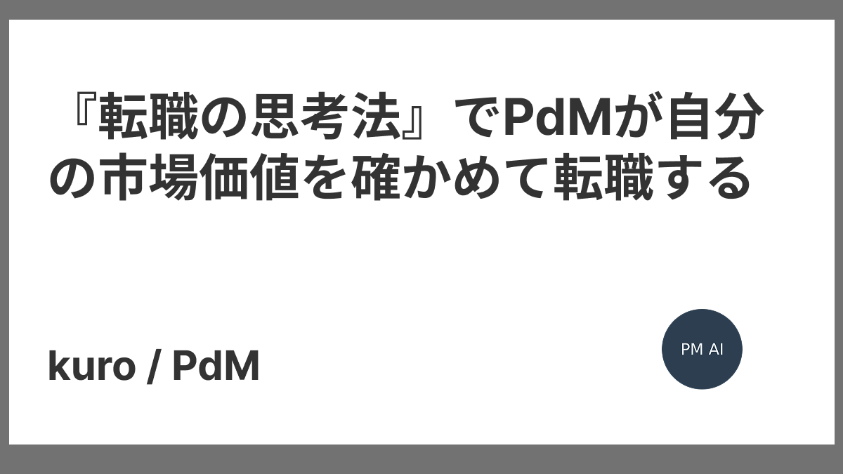 - 最も確実な道は、転職サイトを眺めることではなく、今の職場で「勝手にPdMのように」動き始め、小さな実績を作ること