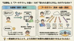 このように、一度抽象化することで、解決策の自由度が爆発的に上がり、より汎用的で本質的な機能を設計できるようになるのです。