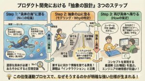 一度「抽象」の世界に潜り、本質を掴んでから、再び「具体(解決策)」の世界に戻ってくる。この「具体と抽象の往復運動」こそが、PdMが付加価値を出すために必要な思考です。