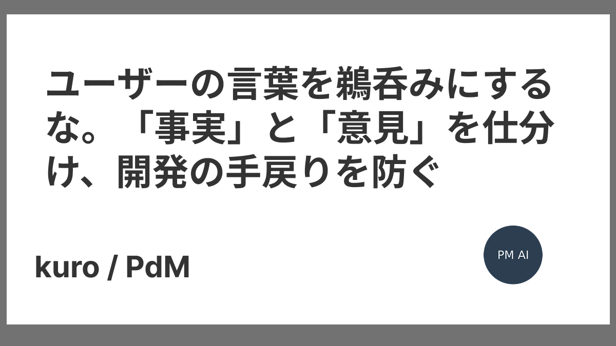 • ユーザーの発言には「事実(Fact)」と「解釈(Opinion)」が混在しており、これをフィルタリングせずに開発を進めることは、砂上の楼閣にビルを建てるようなもの