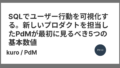 ユーザーが「週3回使っています」と言っていても、ログを確認すると月に1回程度しか使っていない、ということはよくあります。ログから見える事実を対比させることで、ユーザーインタビューでの発言の真偽を見極めるきっかけになります。