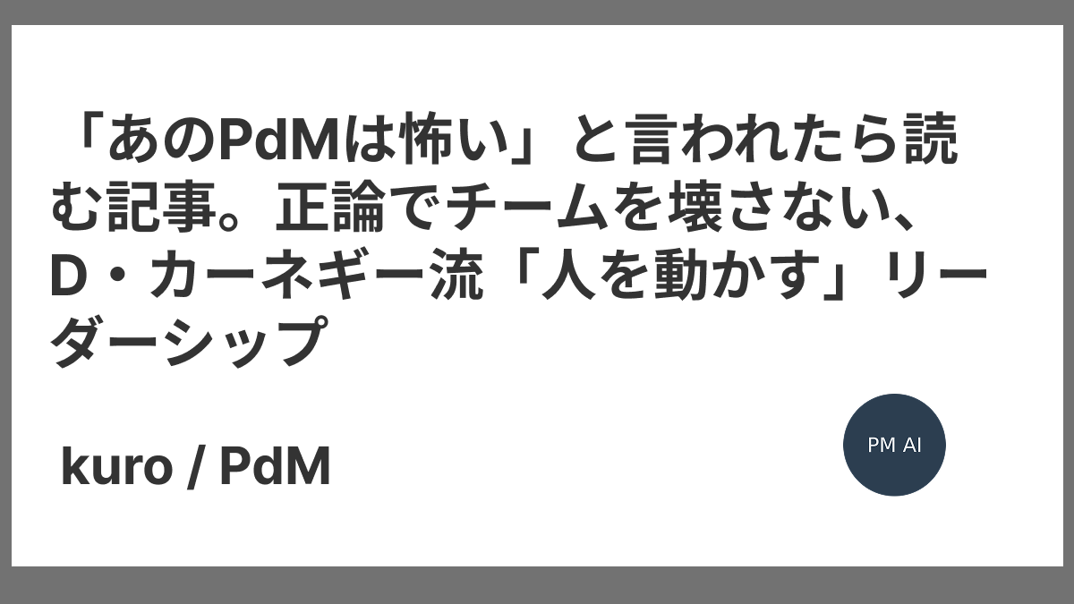 「あのPdMは怖い」と言われたら読む記事。正論でチームを壊さない、D・カーネギー流「人を動かす」リーダーシップ