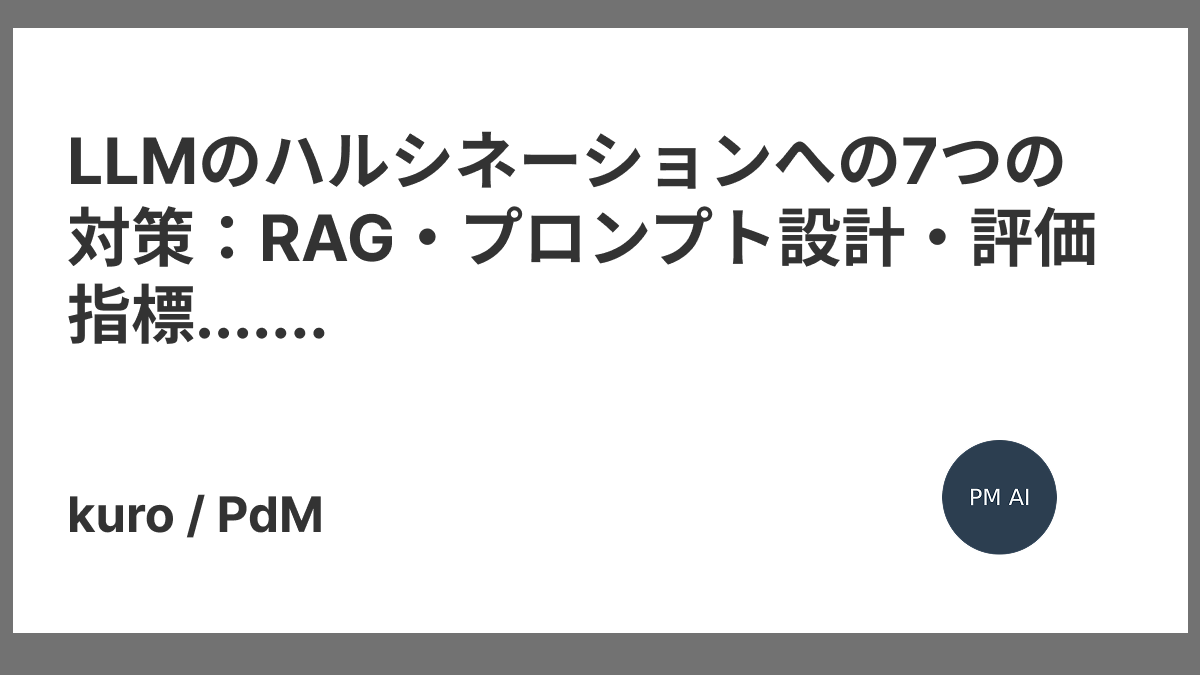生成AIを使った機能開発は多くのサービスで一般化しつつあります。一方で、「ハルシネーション(幻覚)」と呼ばれる問題が顕在化し、プロダクト運用の現場で頭を抱えるPMも少なくありません。