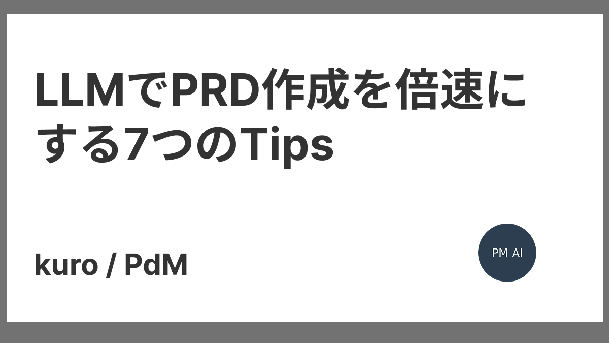 - PRD作成段階の構想が曖昧だと要件の抜け漏れや認識違いが表面化し、リリース直前での大幅修正を強いられる。LLMを使えば背景情報の整理からユーザーストーリー作成、非機能要件の洗い出しまで質とスピードを両立できる