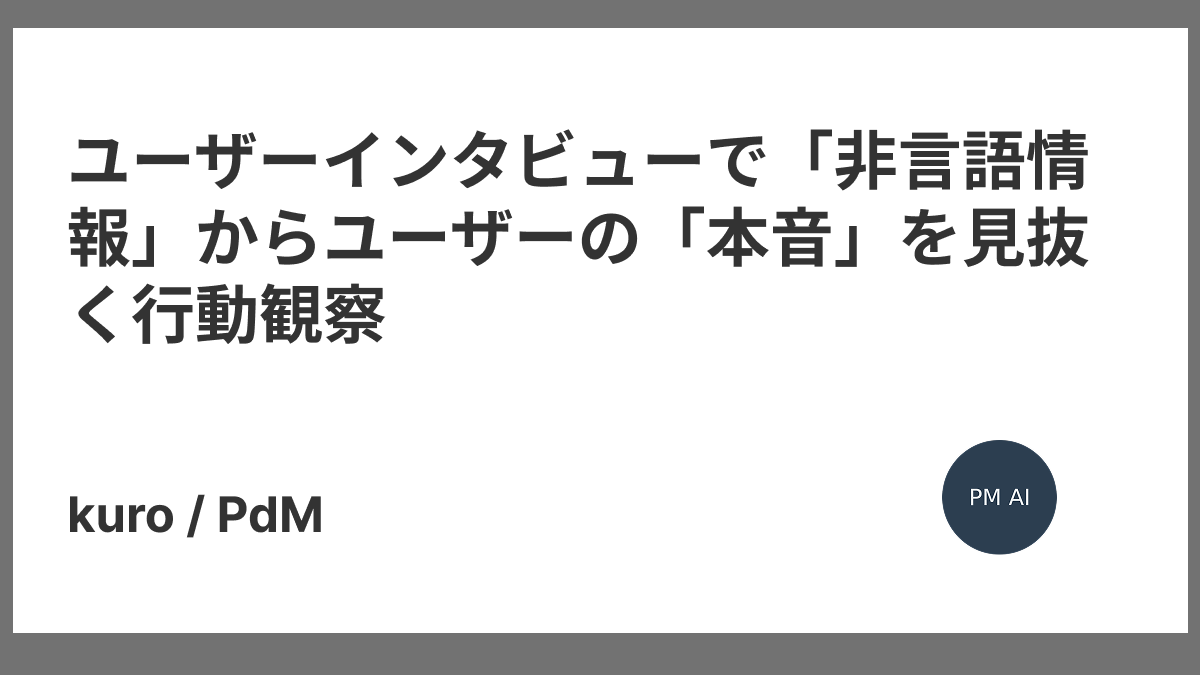 今回は「オブザベーション×ユーザーインタビュー」をテーマに、非言語的な情報を捉えるメリットや、具体的な観察ポイント、データ整理方法、フレームワークを解説します。インタビュー結果にオブザベーションを掛け合わせることで、より正確かつ深いユーザー理解を目指しましょう。